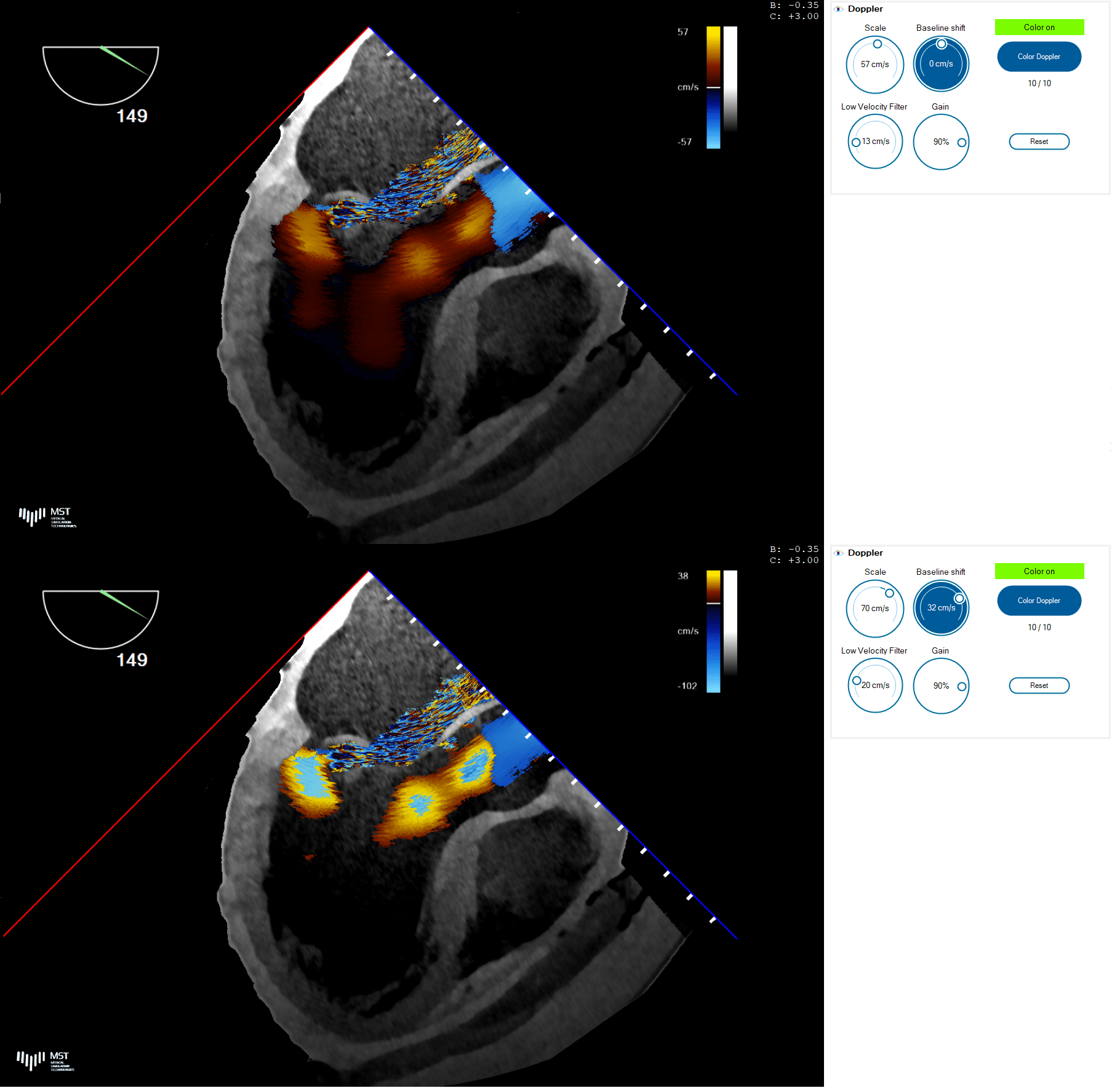 Figure 9. The Doppler settings and their influence on the color display.