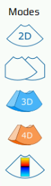 Modes panel lets choose view between 2D, xPlane, 3D, 4D or Doppler. Hover over any of the modes to see its short description:
